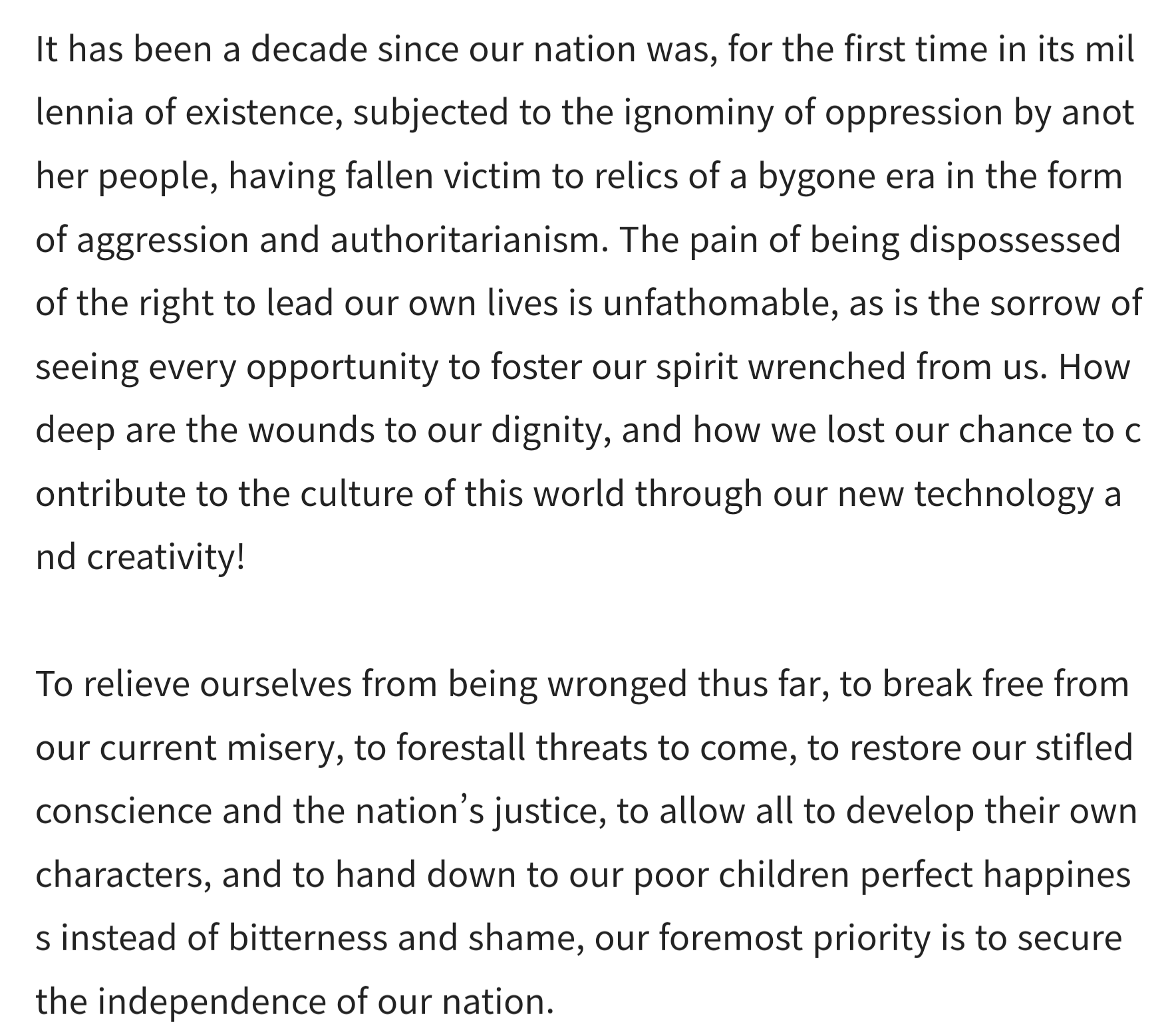 Were suffering from losing their country